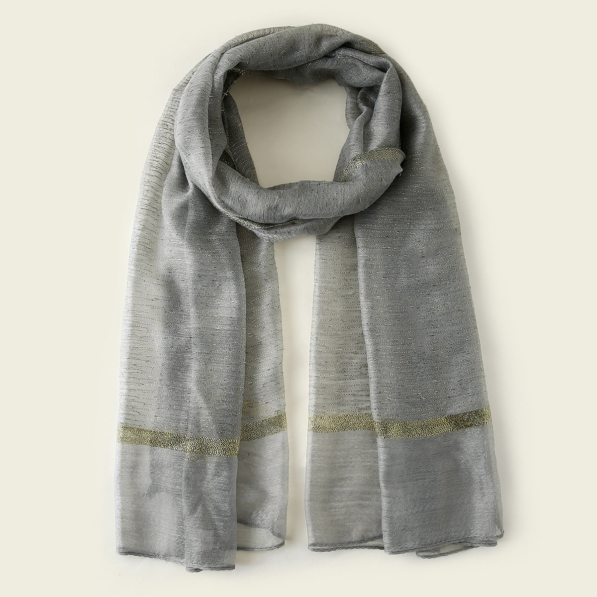 A119 Gold Silk Shearing Long Scarf Arabian Scarf Hijab Monochrome Fashion Popular Export Foreign Trade New