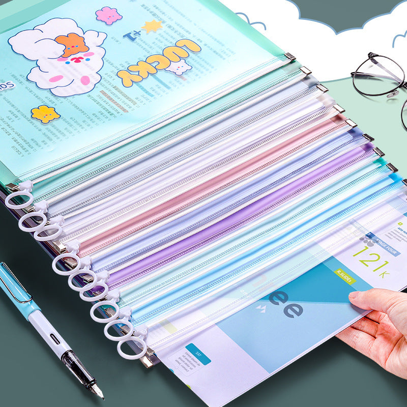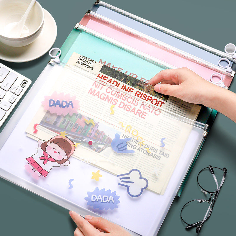 A4 transparent file bag pulling archive bag Korea small fresh junior high school data bag plastic test paper storage