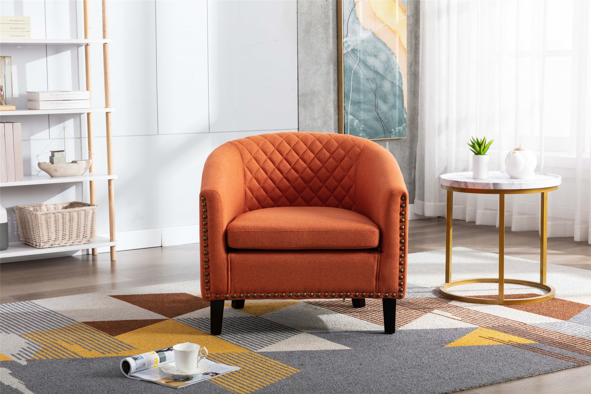 COOLMORE accent Barrel chair living room chair with nailheads and solid wood legs Orange Linen