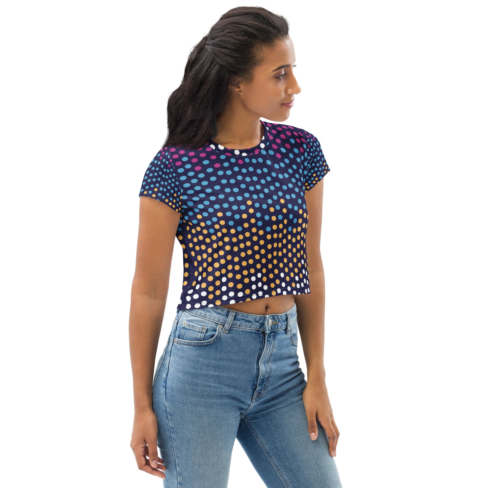 Looking for you next wardrobe favorite? Well, look no further because this crop tee is printed and sewn to fit you just right. To top that off, the original all-over design is definitely worth showing off, so don't hesitate to own one of these tees - they're meant to be adored.