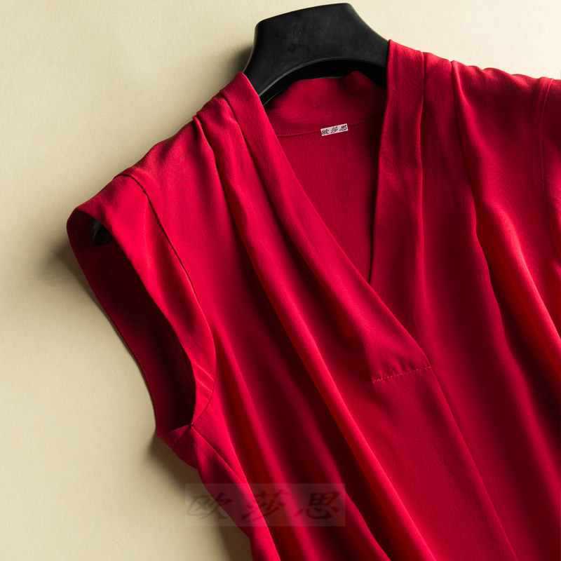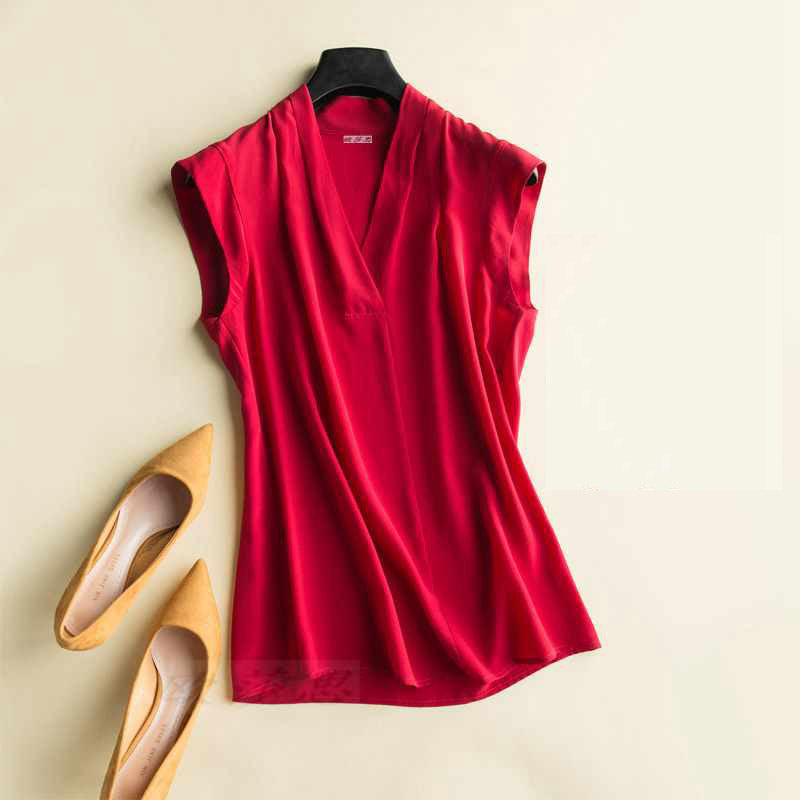 Double silk sleeveless V-neck t-shirt vest large size 2021 new summer solid color bottom OL commuter loose jacket