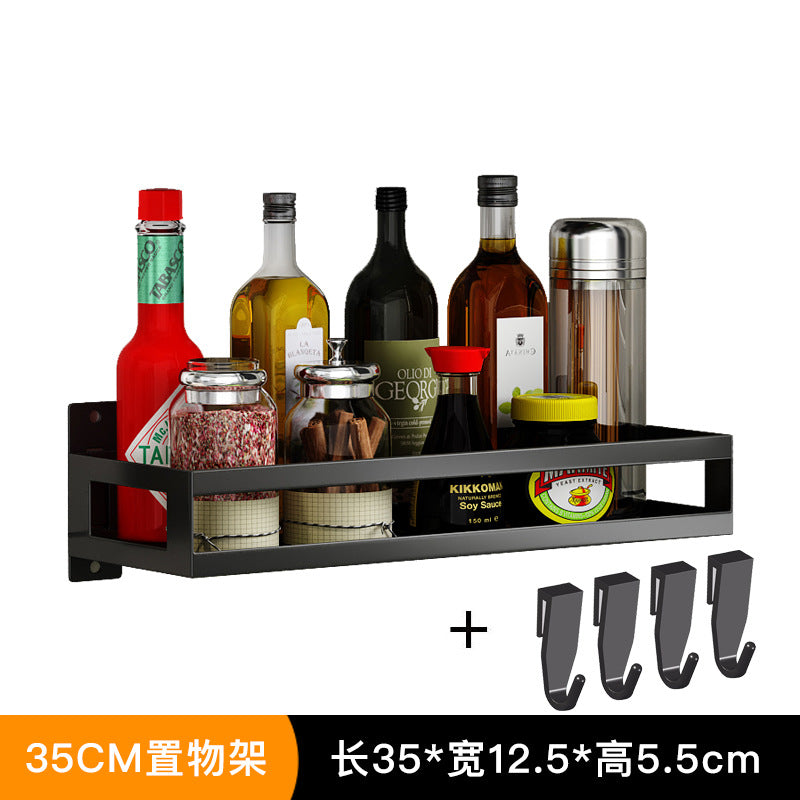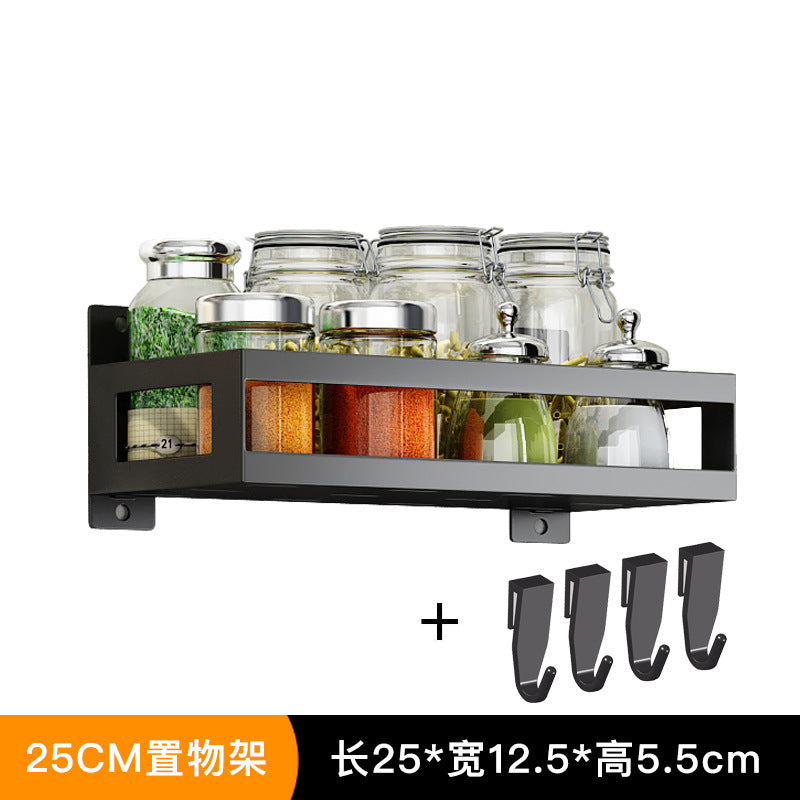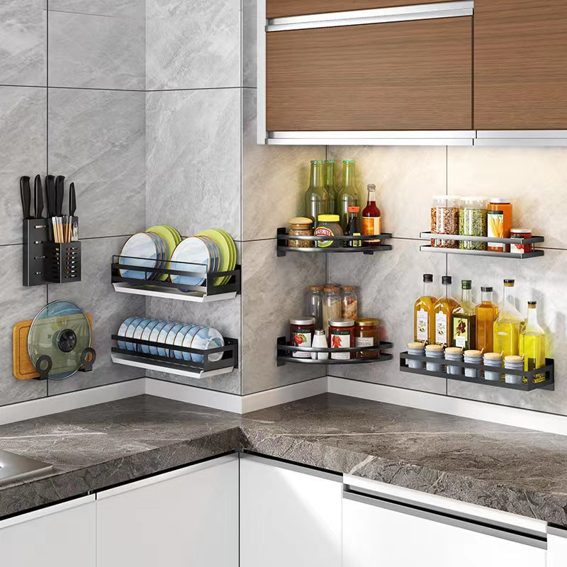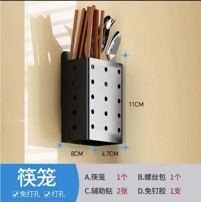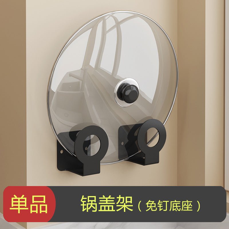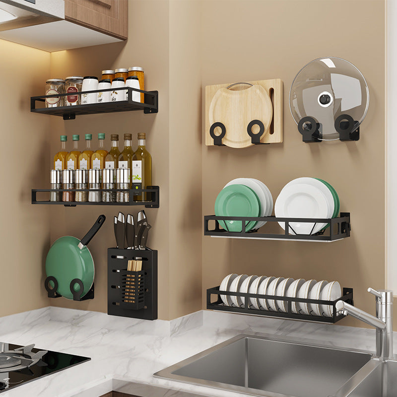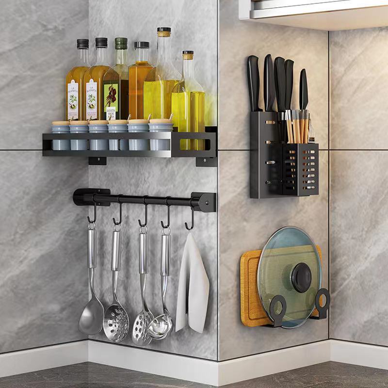 Exhaust-free stainless steel kitchen shelf wall hanging black pot cover chop chopsticks kitchen tool holder finishing storage rack