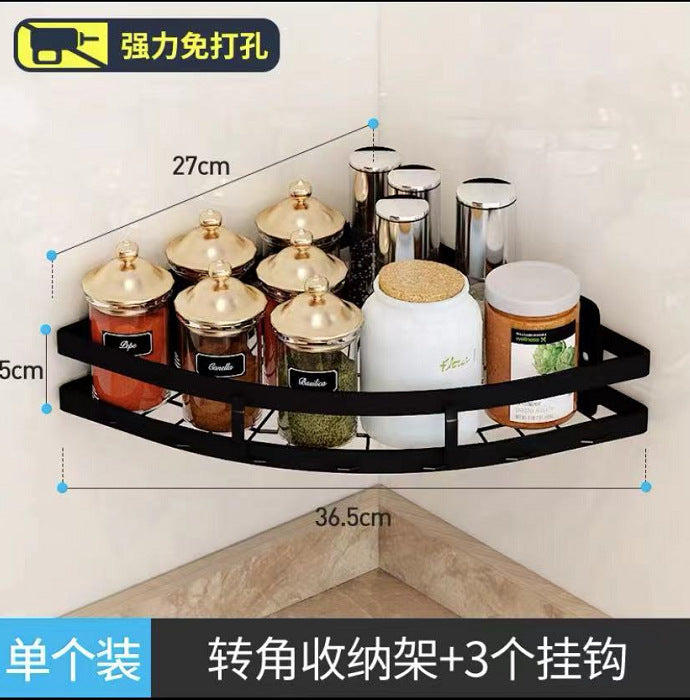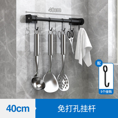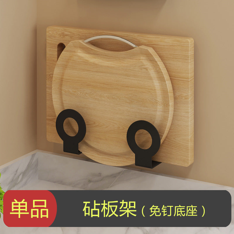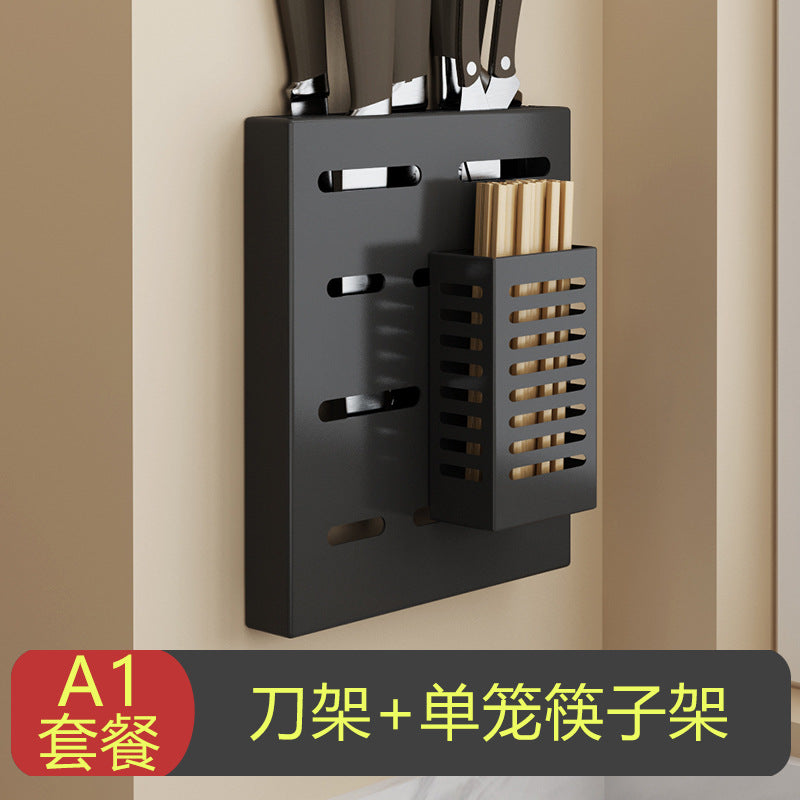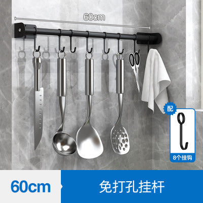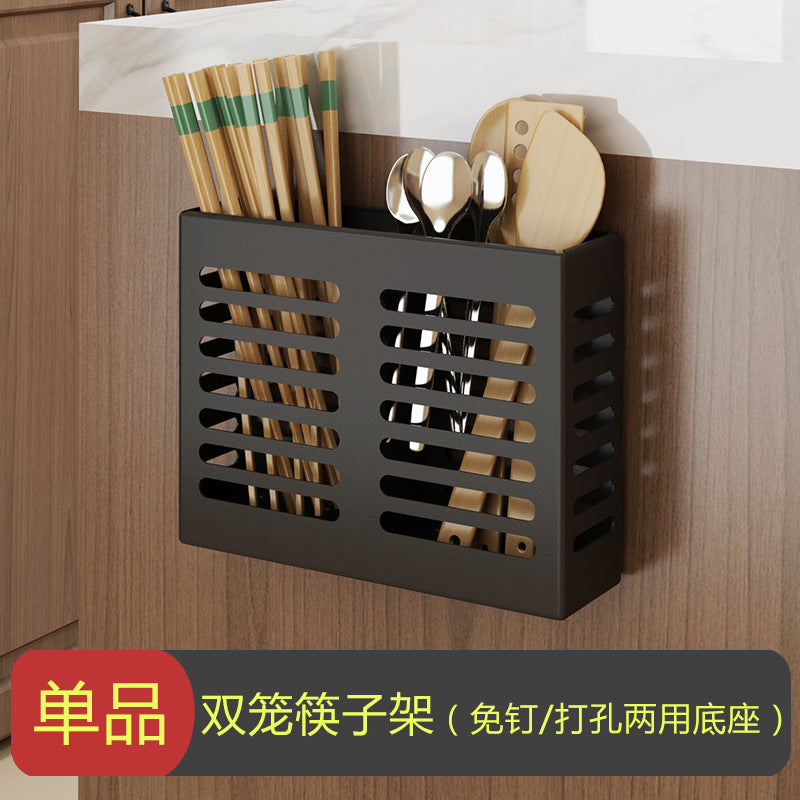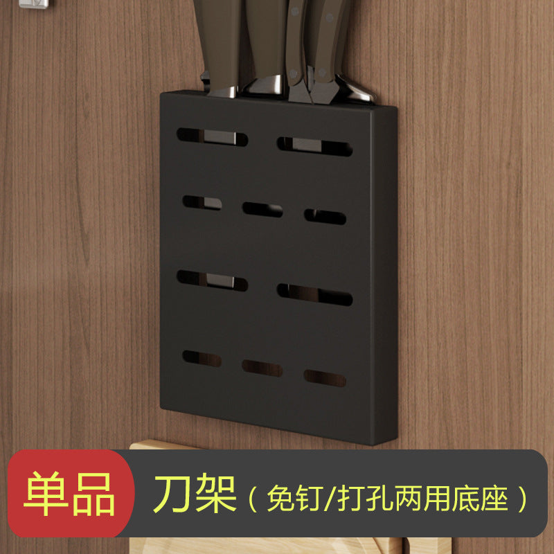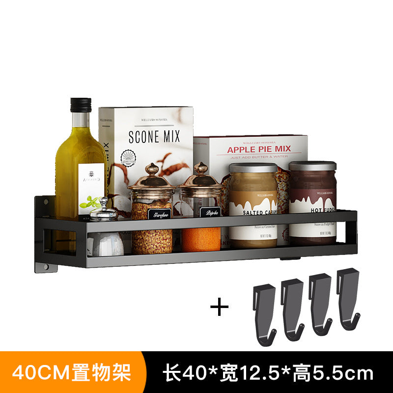 Exhaust-free stainless steel kitchen shelf wall hanging black pot cover chop chopsticks kitchen tool holder finishing storage rack