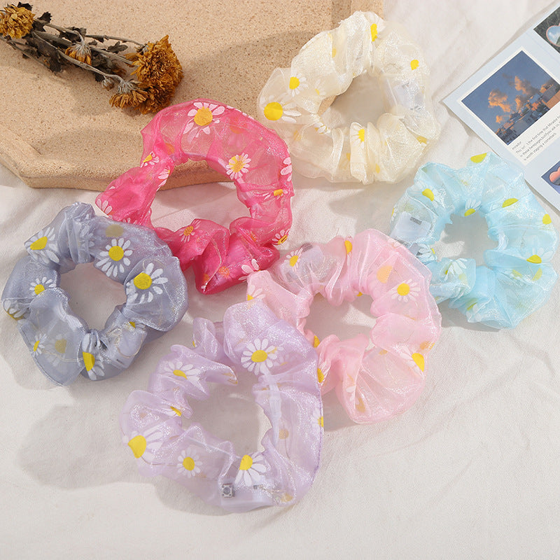 LED small daisy printing flower fertilizer intestines teenage girls clearing hair accessories chiffon cloth hair ring boast