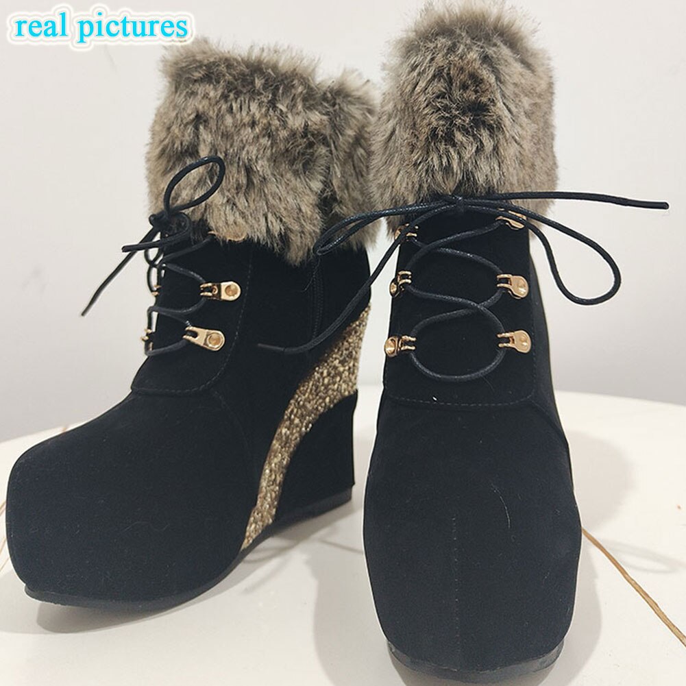 SARAIRIS Plus size 43 Fashion Russia Winter Wedges Shoes Ankle Boots Women Warm Boots Platform High Heels Snow Boots Shoes Woman