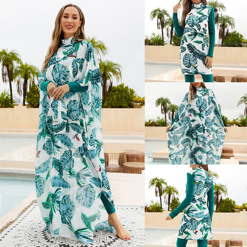Southeast Asian Muslims are fully surrounded by diving, surfing, conservative swimsuit, four-piece beach sunscreen split swimsuit