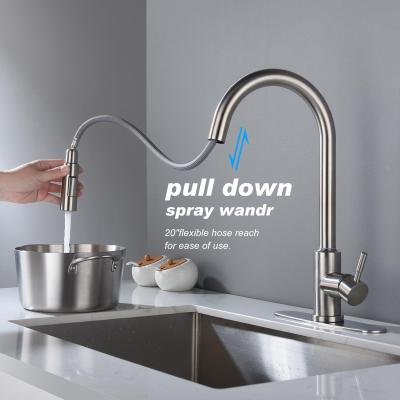 Dual mode setting - Your kitchen faucet comes equipped with a pull-down sprayer that, thanks to its hard rubber sprayer hole, provides a soft inflatable flow of water and a strong spray without splash.360 degree kitchen sink faucet sprayer.