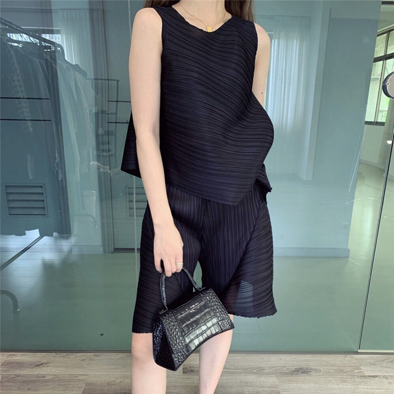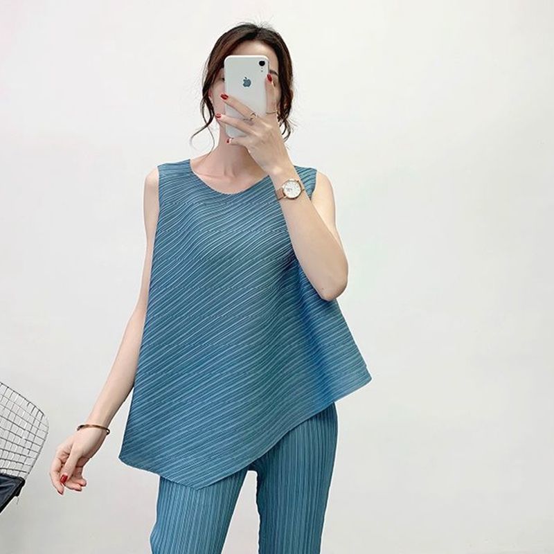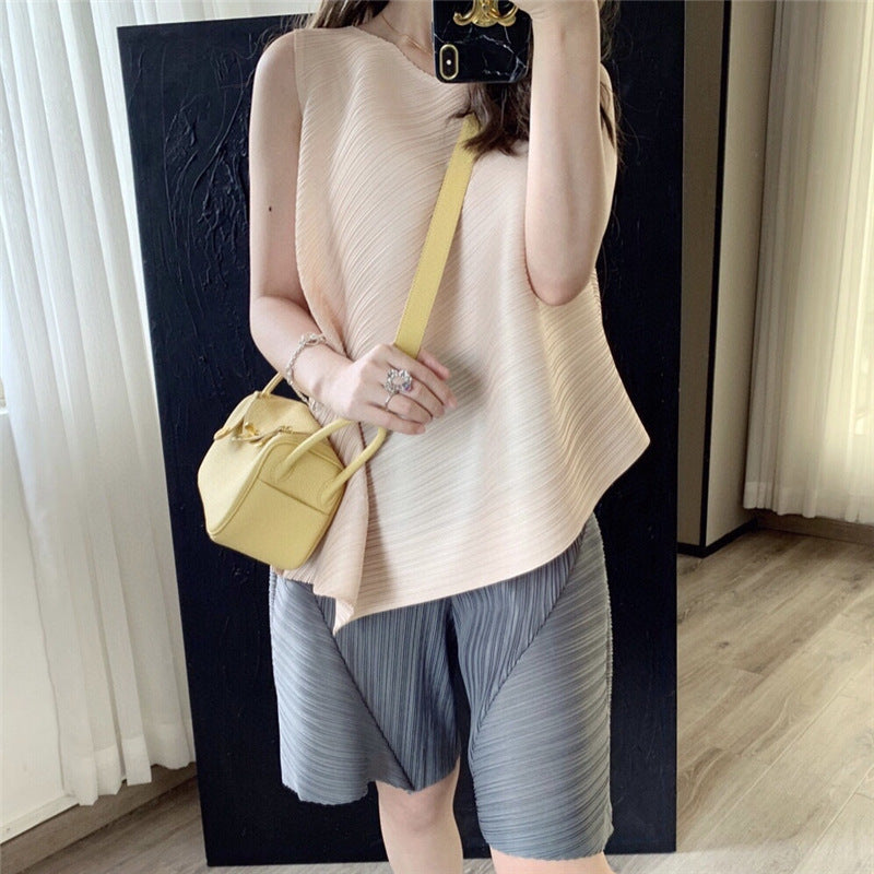 Three homes 2021 summer care machine irregular sleeveless vest ladies T-shirt superb loose pleated blouse