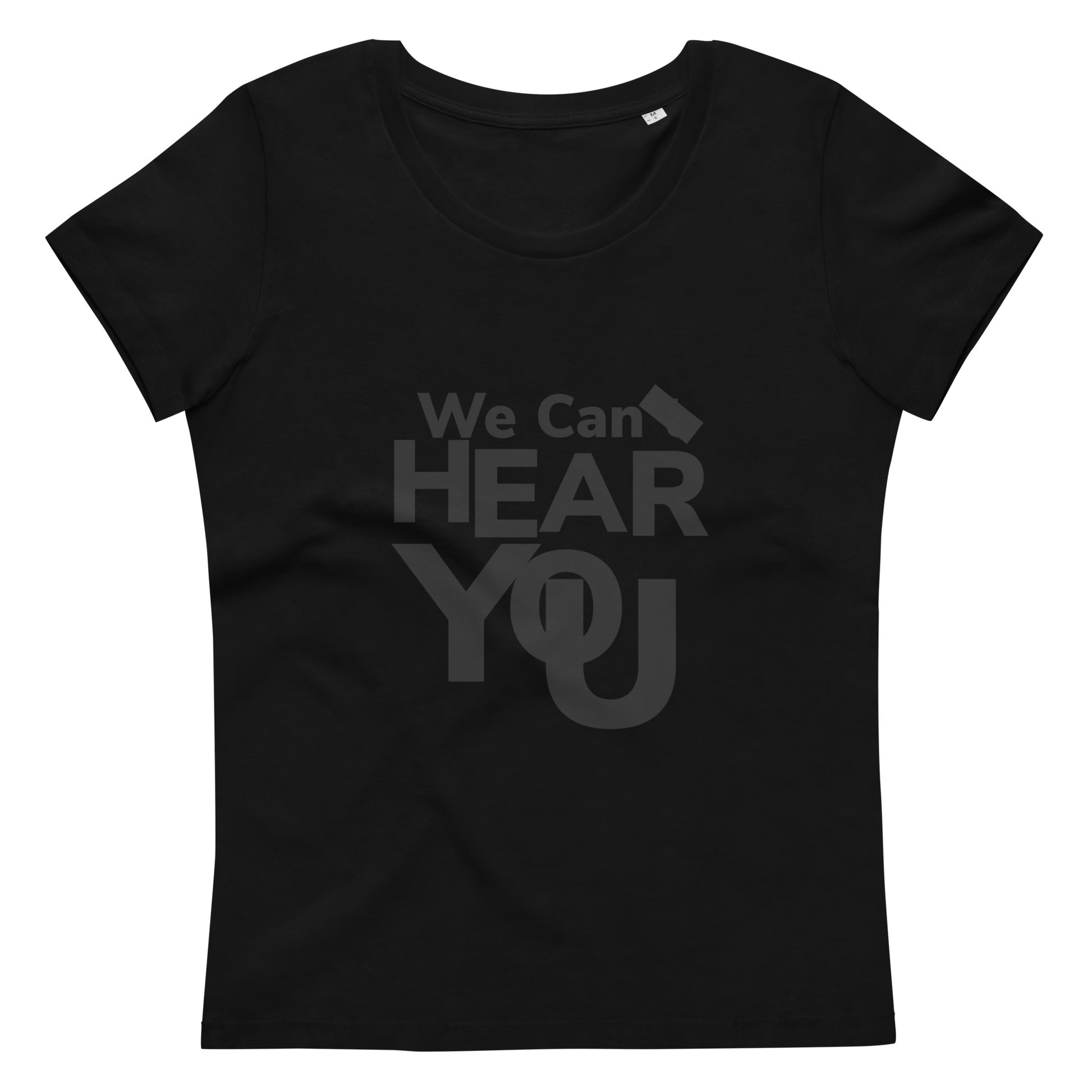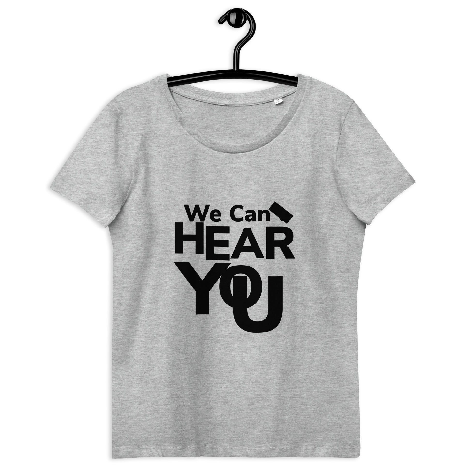 The women's fitted tee is a must-have. It's high-quality, super comfortable, and has form-fitting qualities. Best of all, it's made of 100% organic ring-spun combed cotton, making it an eco-friendly choice!