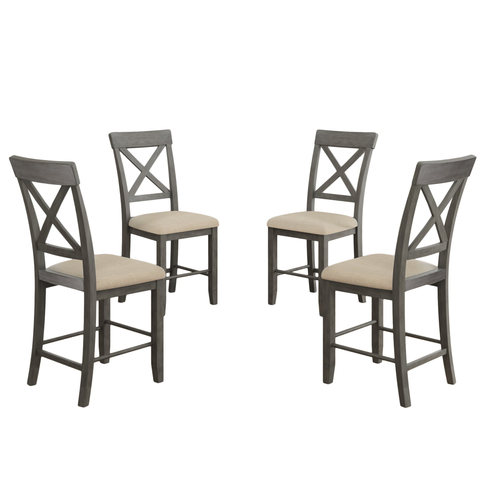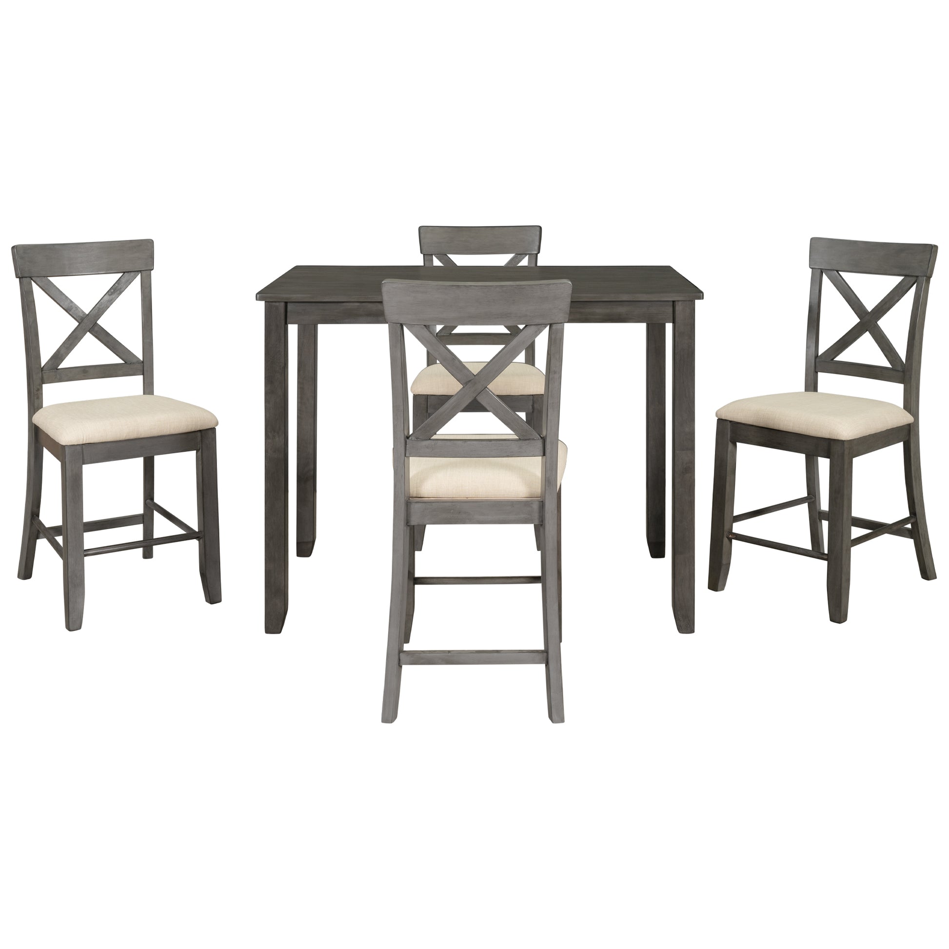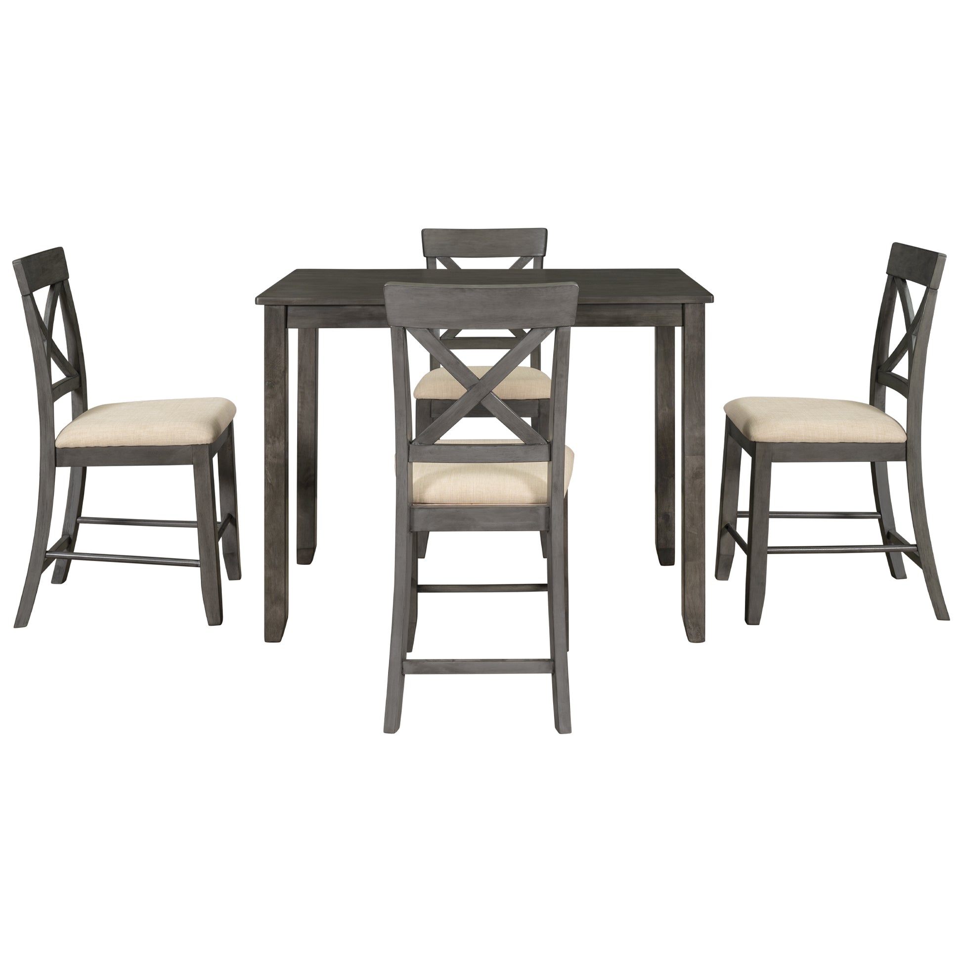 Wood 5-Piece Counter Height Dining Table Set with 4 Upholstered Chairs, Gray