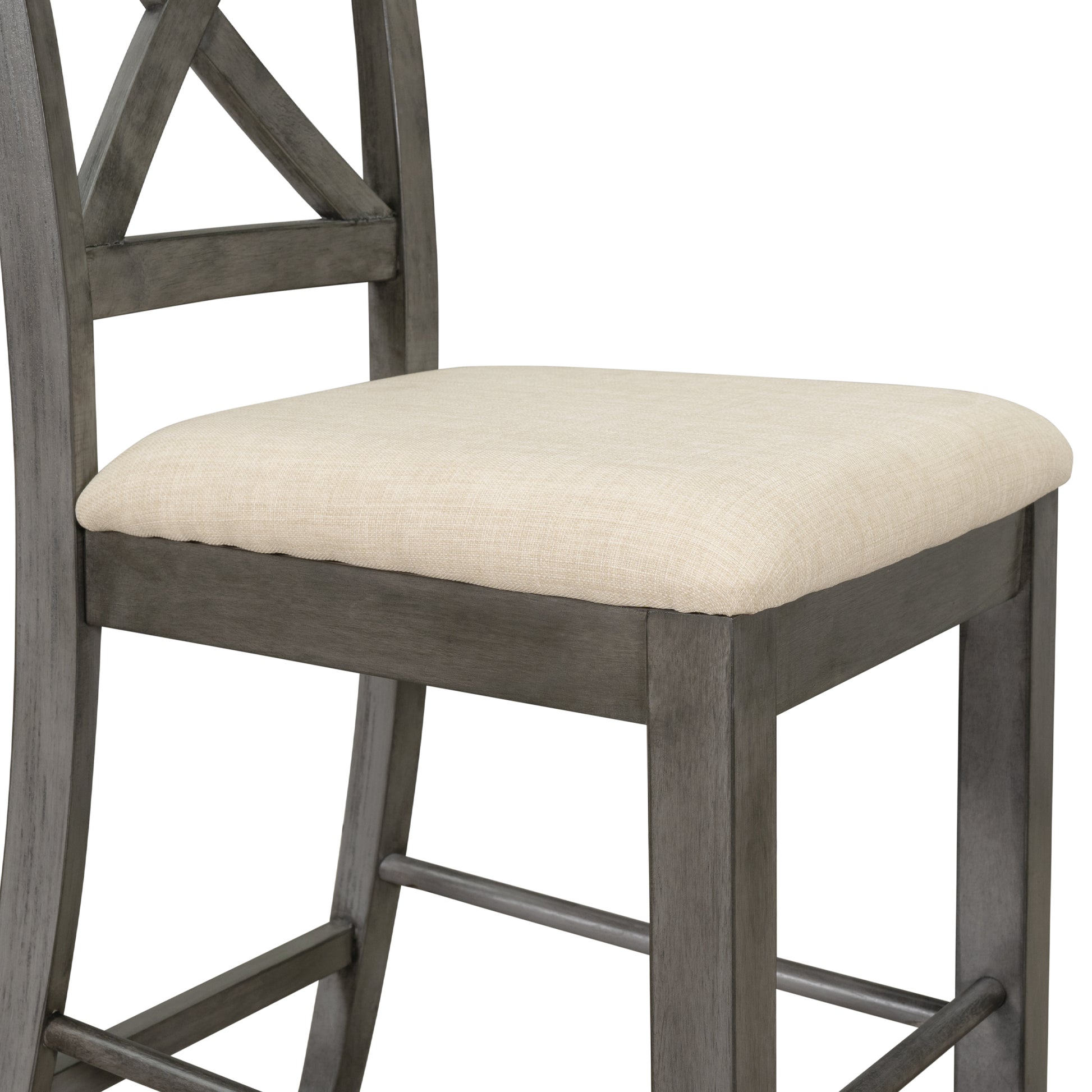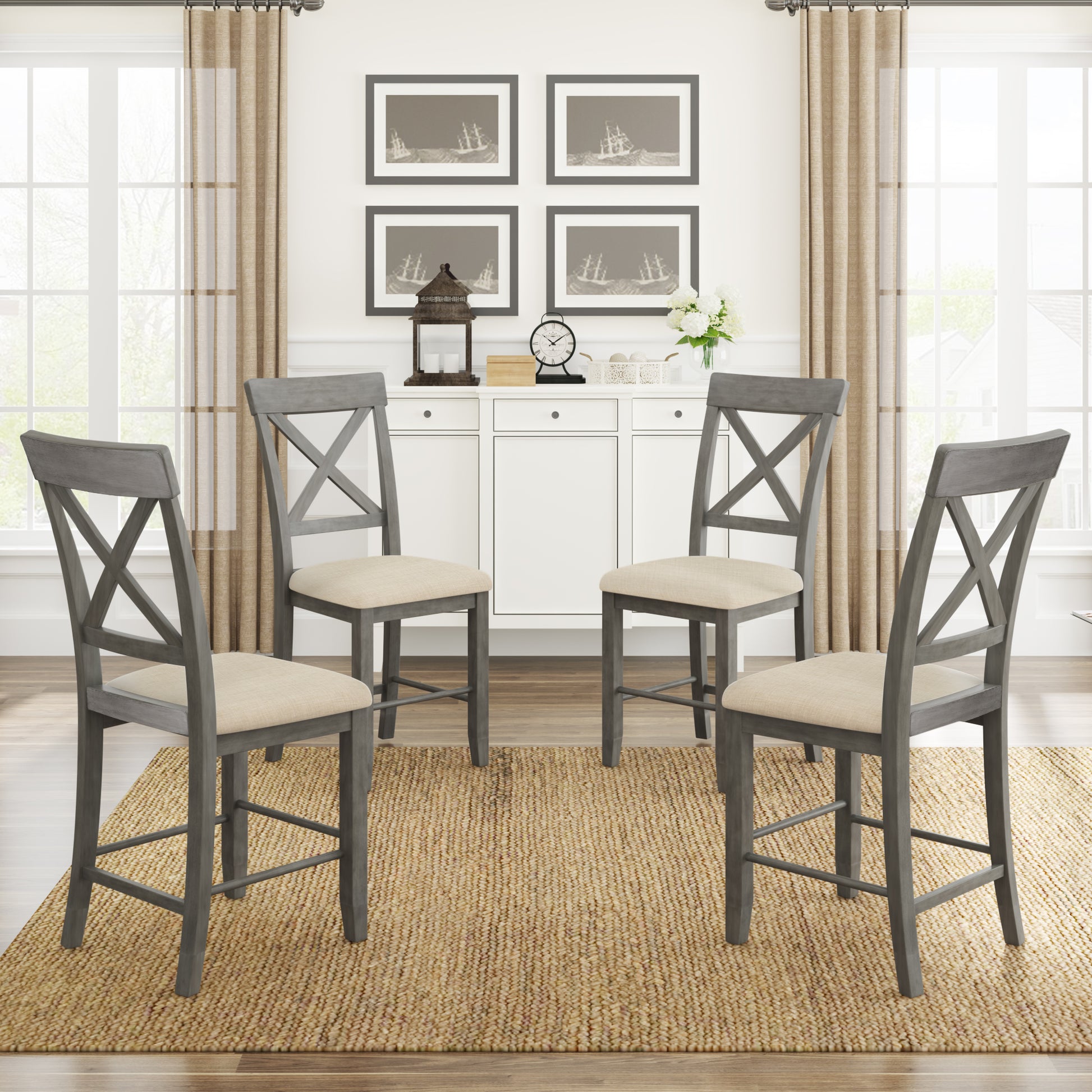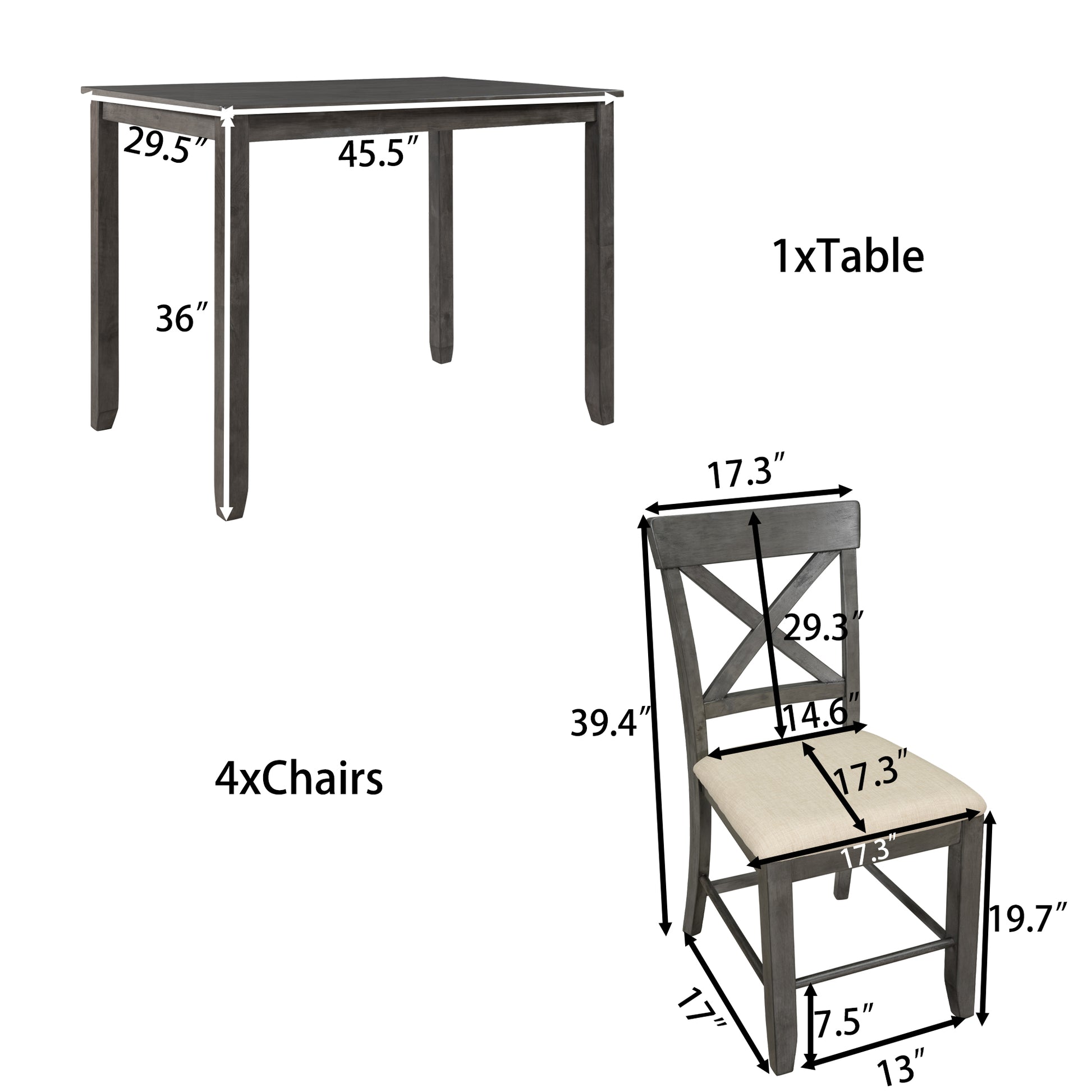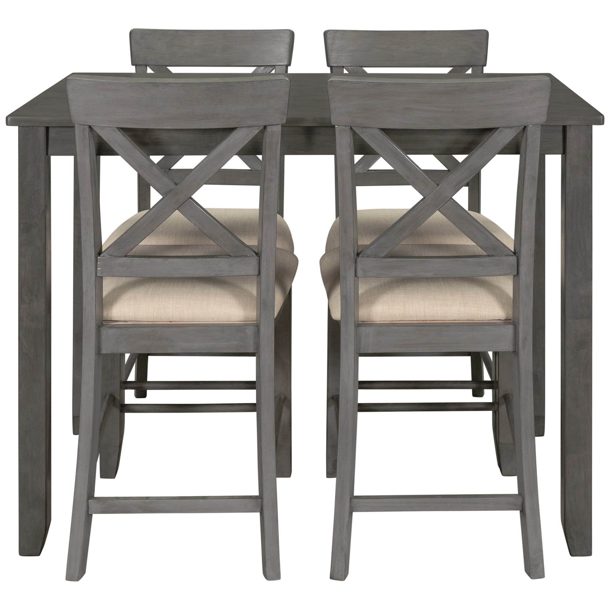 Wood 5-Piece Counter Height Dining Table Set with 4 Upholstered Chairs, Gray