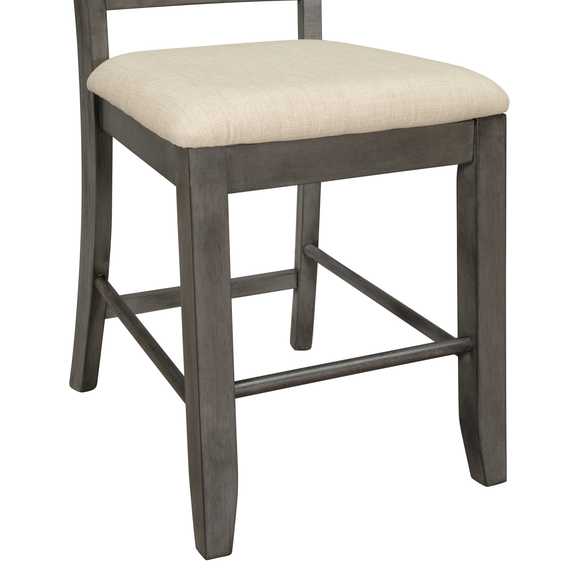 The gray counter height chairs feature slightly curved back rests for ergonomic support while the seats are filled with plush sponge allowing you to sit for extended periods of time in comfort. 4 base wooden spindles offer reinforced support and solid stability for increased weight capacity holding up to 250lbs.