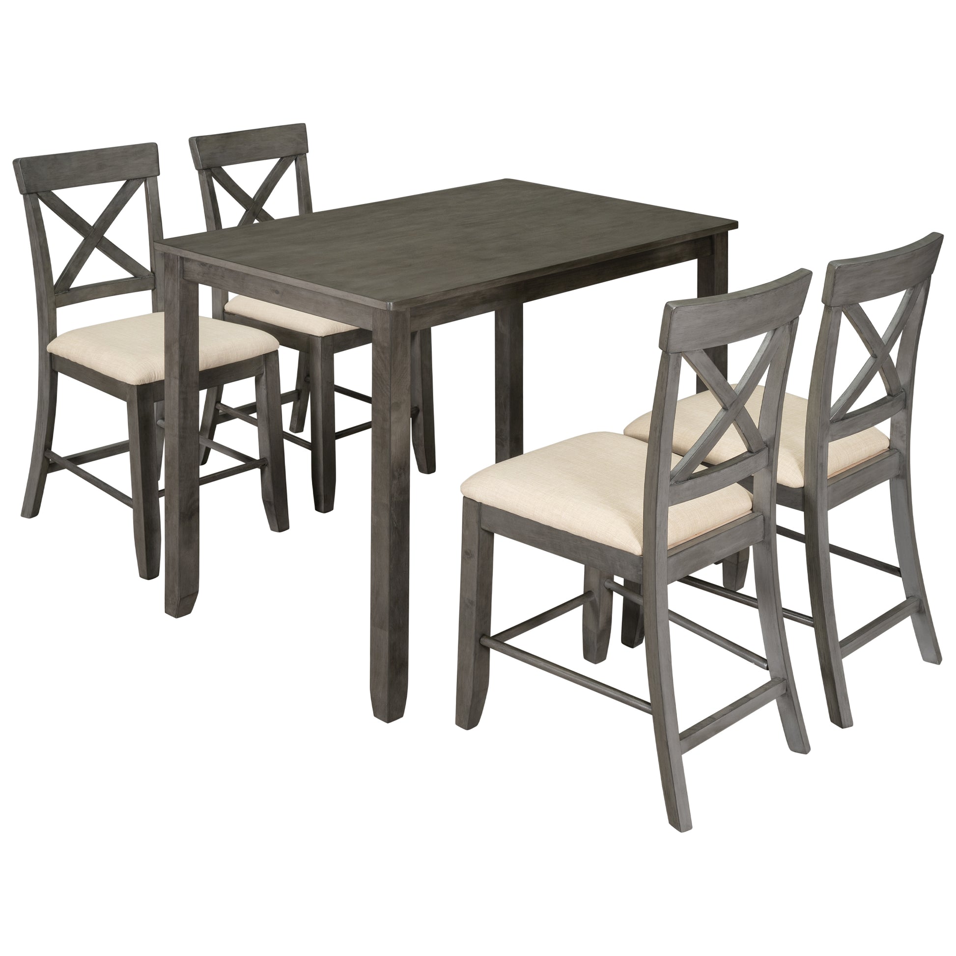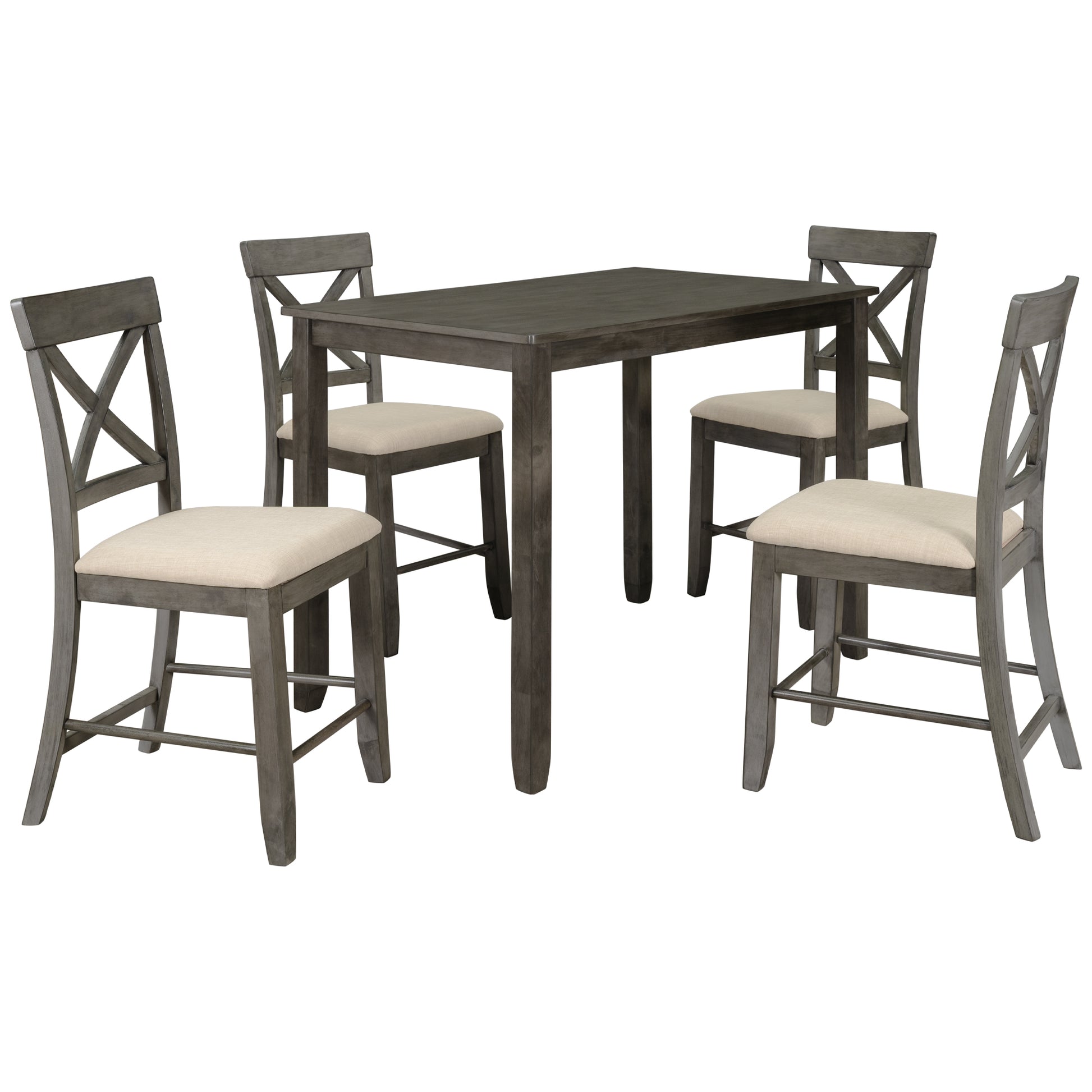 TOPMAX Wood 5-Piece Counter Height Dining Table Set with 4 Upholstered Chairs, Gray