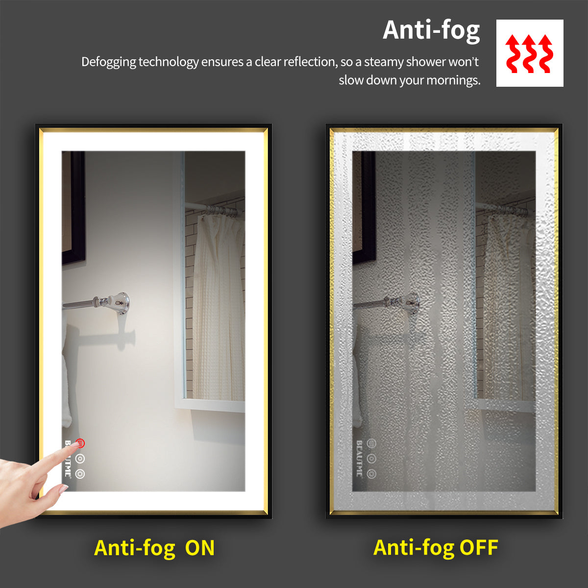 BEAUTME Bathroom Mirror with LED Lights Lighted Makeup Vanity Mirror Wall Mounted Large Size Rectangular Anti-Fog Memory Dimmable Touch Sensor Horizontal/Vertical Warm White/Daylight Lights