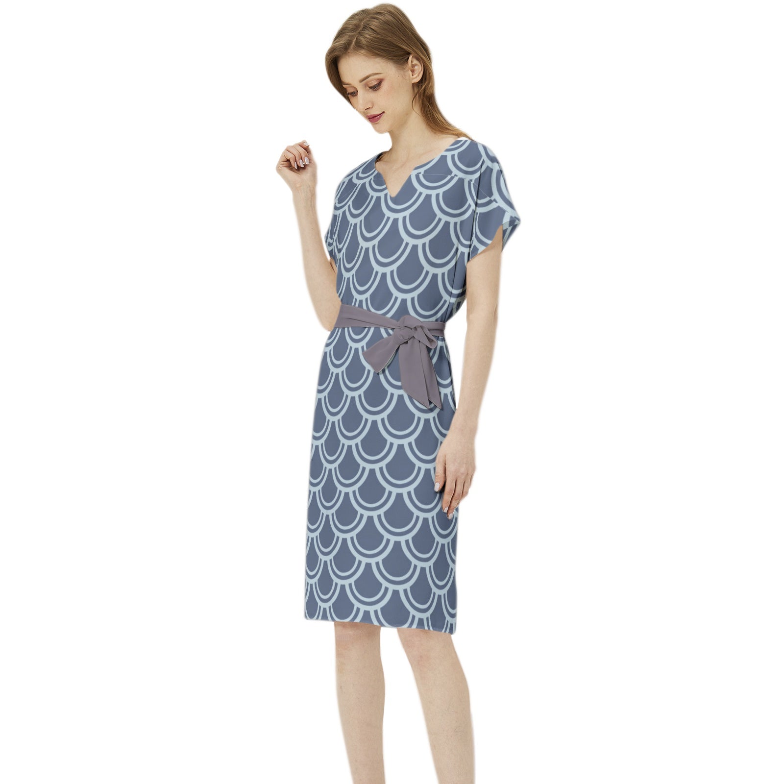 Batwing sleeve, Notched neck, Belt tie waist, Straight hem, Tunic, Casual dress