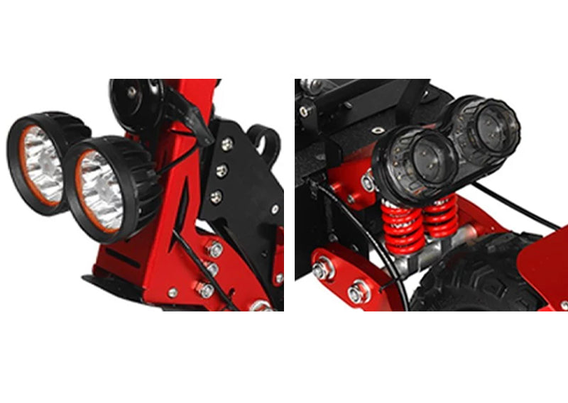Double Front Headlights and rear alarm tail lights illuminate the darkness at night riding, keep you more safe.