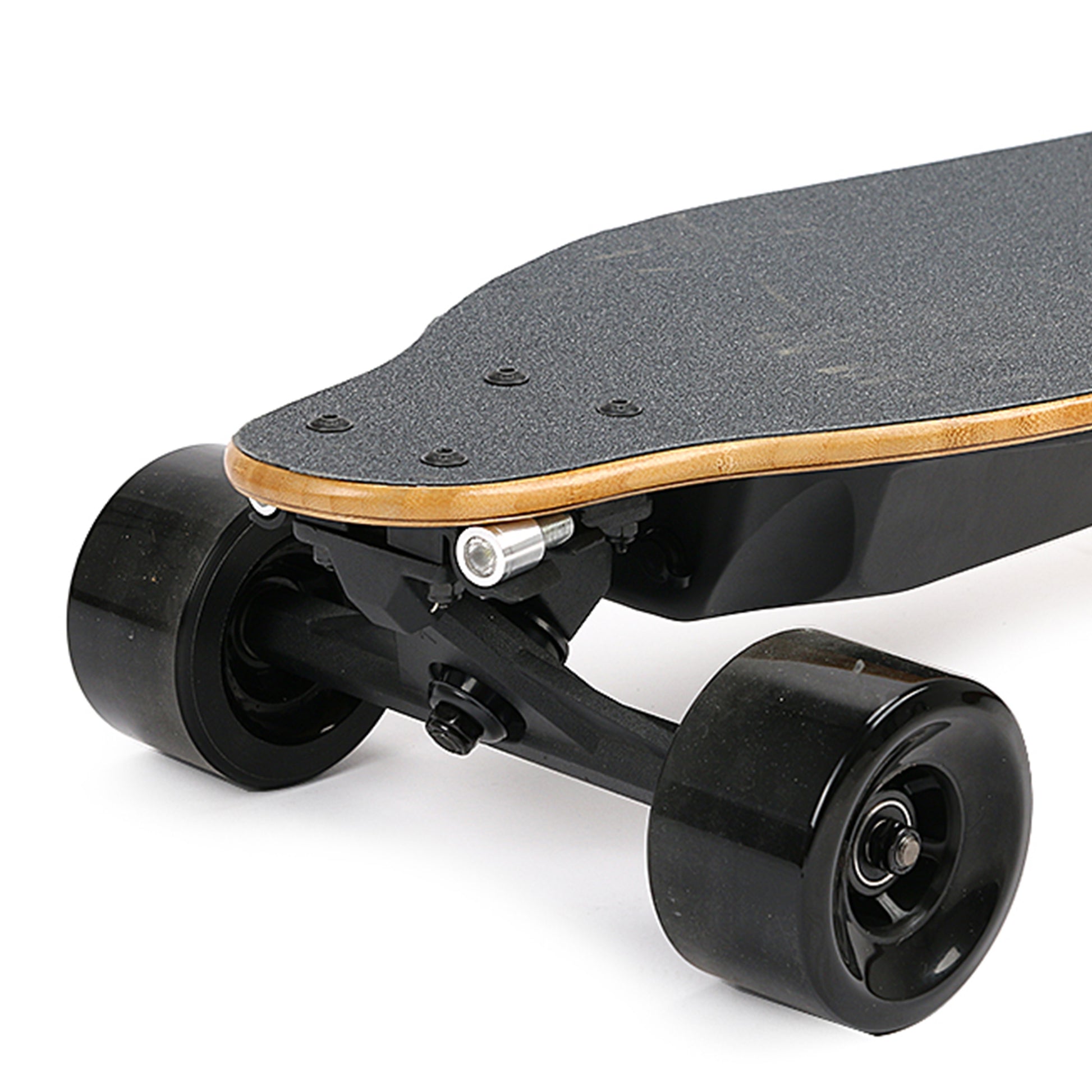 Sturdy Deck:The skateboard uses 1 layer of glass fiber + 3layers of carbonized bamboo + 1 layer of glass. The board surface has good toughness, bearing capacity and waterproof performance.The board is strong enough to withstand the maximum weight of 150 kg