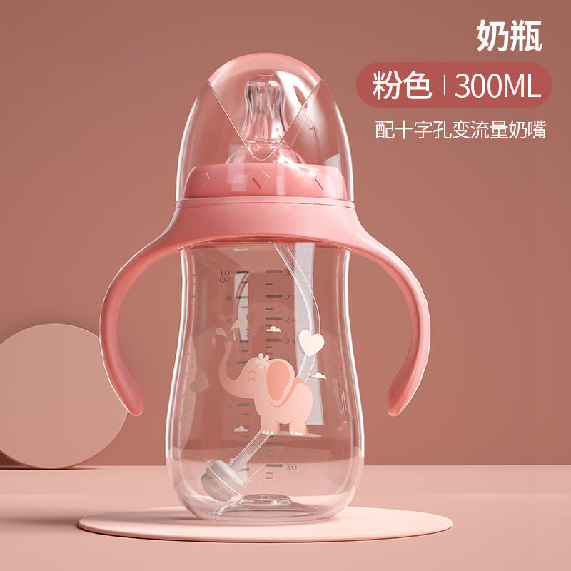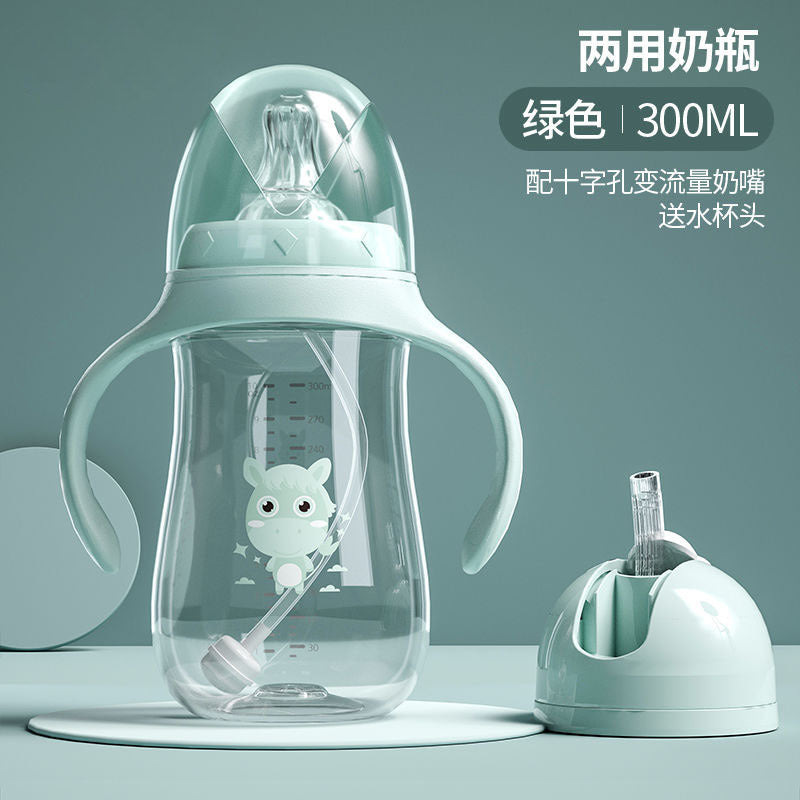 Cross-border hot sale children's school drinking cup infant dual-use bottle wide diameter water cup straw cup leak-leakage anti-fall