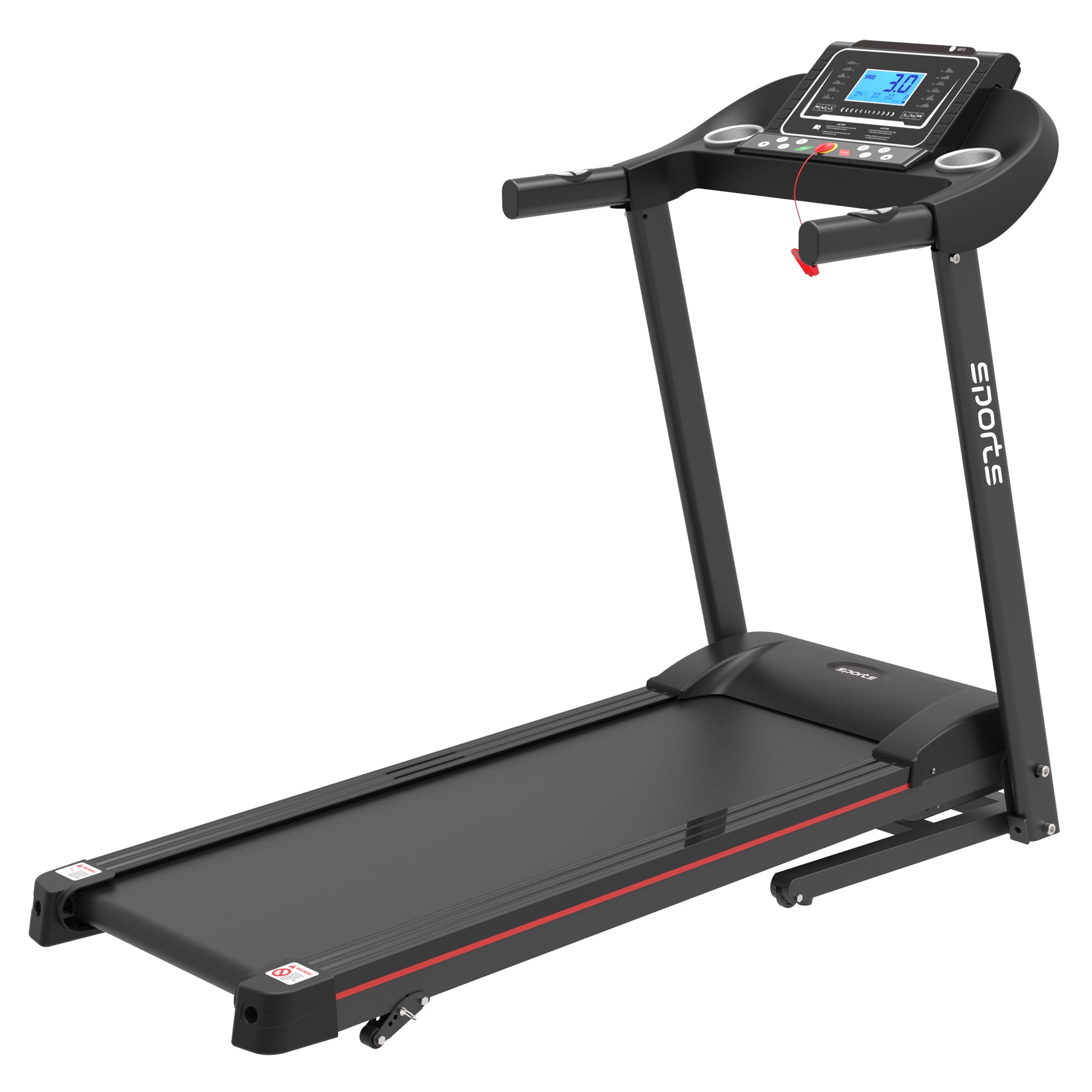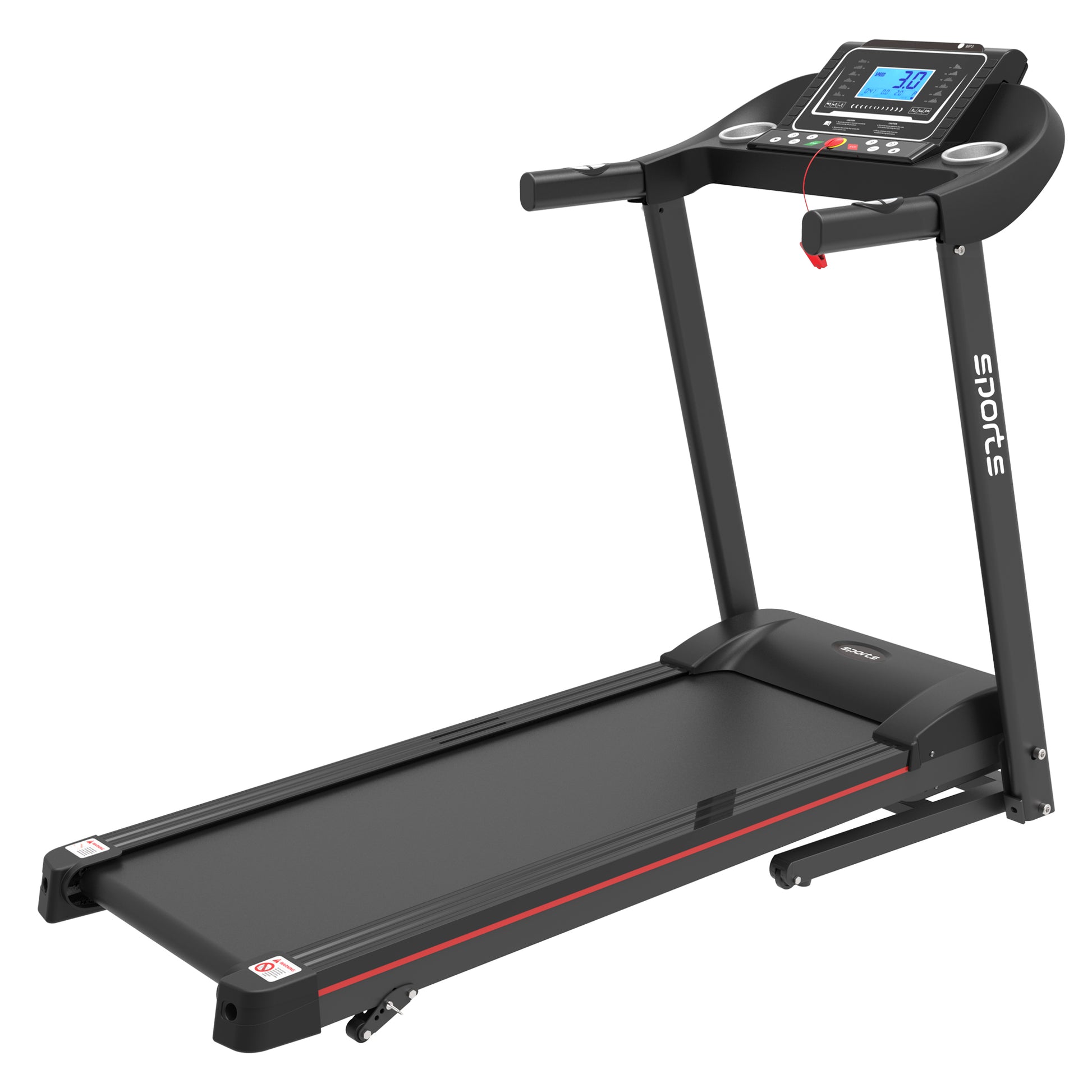- The treadmill is equipped with 5" LCD display and 12 pre-set programs, one-touch operation helps you to enjoy the running at home. You can monitor real-time data for each exercise, including speed, time, calories, distance and pulse.